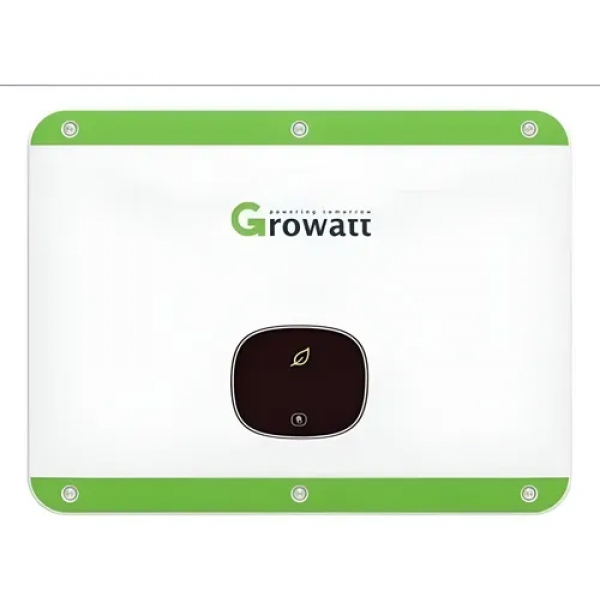 Este inversor Growatt tem excelente eficiência de conversão (até 98,8%) e possui um botão de toque e um display OLED. Confiável, robusto e conta com mecanismos de proteção abrangentes, além de classificação ambiental IP66. Conta também com quatro entradas para painéis solares de alta corrente (32 A) e dois canais MPPT por entrada para maximizar a eficiência e a potência do sistema. Imagem meramente ilustrativa.